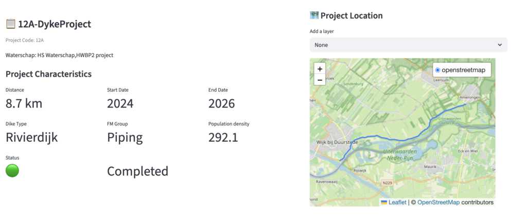 The starting point is a centralized dashboard containing information on both historical and ongoing dyke reinforcement projects.